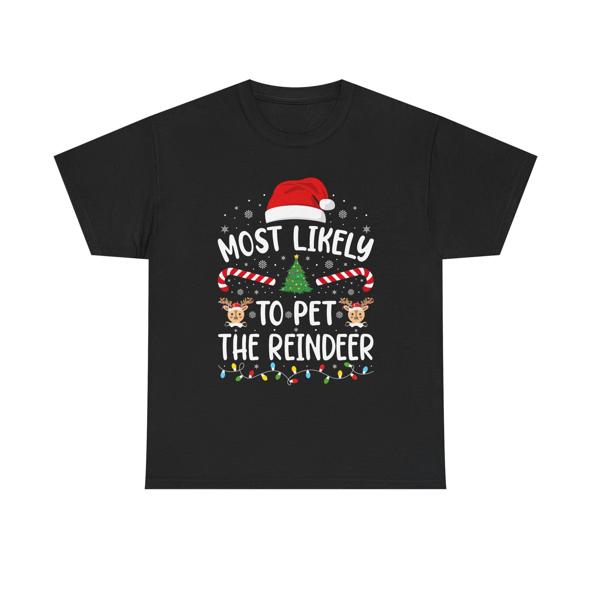 Most Likely to Pet The Reindeer Family Matching Christmas Funny Christmas T-Shirts for Family, Holiday Matching Adults Tee